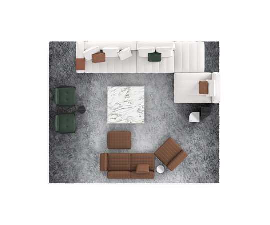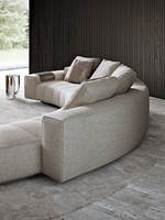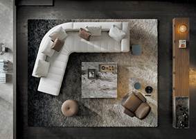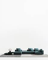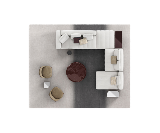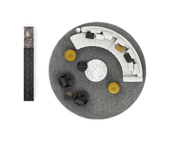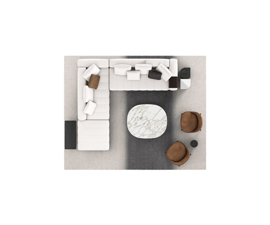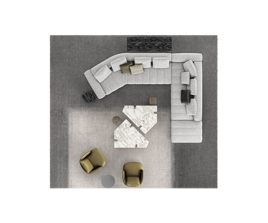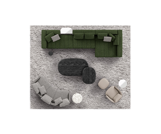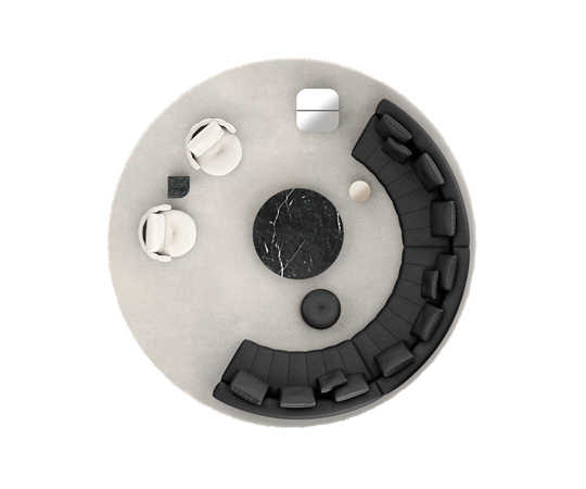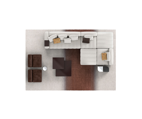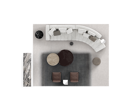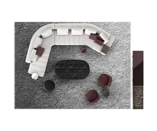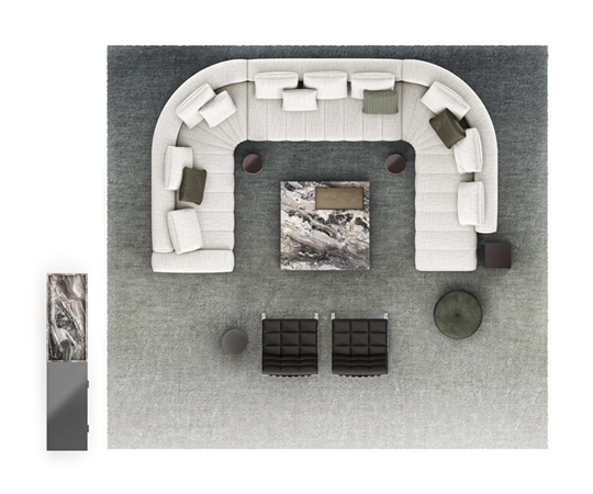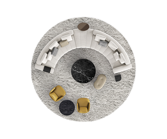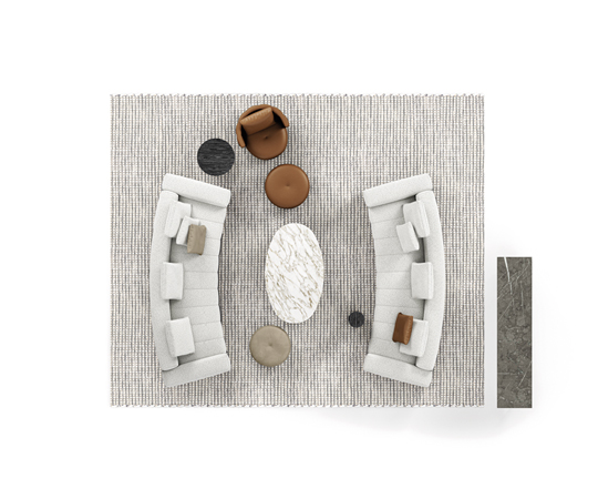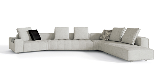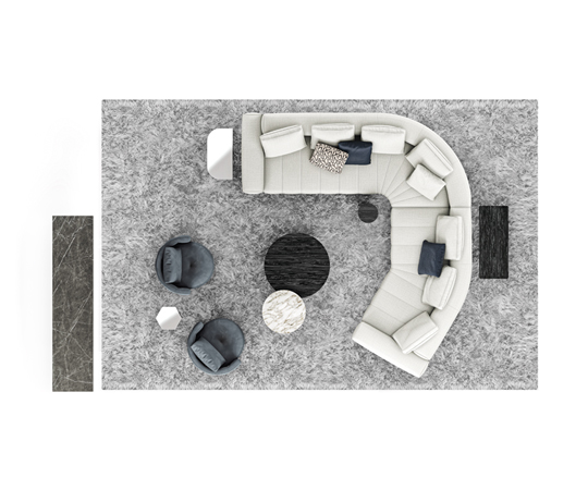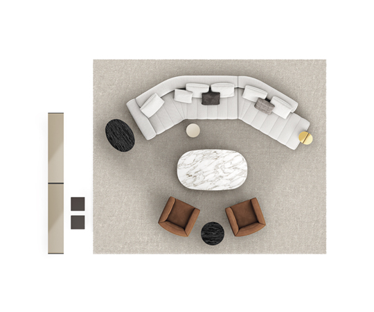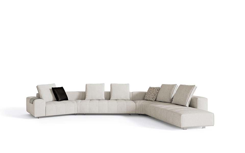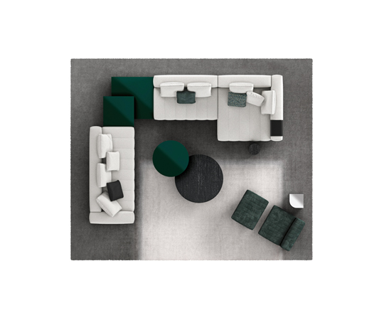 トラディショナルな直線コンフィギュレーションに、よりダイナミックな動きをもたらす曲線や傾斜エレメントが加わりました。際立つ湾曲が特徴的な傾斜エレメントは、30度、75度、90度の角度を持つコンポジションが可能なようにデザインされています。斬新な曲線コンフィギュレーションは、よりトラディショナルなモジュールと組み合わせても、しなやかな湾曲を描く外観をもたらすことができ、リビングルームの新しいアレンジメントを実現します。個々の多様なニーズやテイスト、そして住宅における暮らし方の絶え間ない変化に触発されながら、常に進化し続ける柔軟なシステムです。