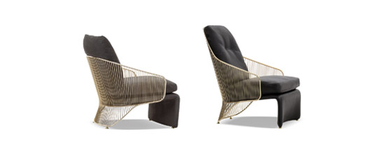 エレガントなステッチは、Jacquesアームチェアとソファの曲線的なシルエットを強調し、丸みを帯びた形状は、Lawrenceソファのフォーマルでジオメトリックなラインとの素晴らしいコントラストを生み出しています。