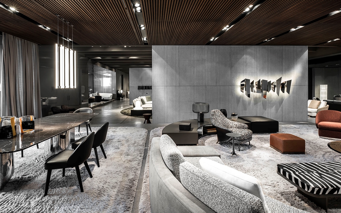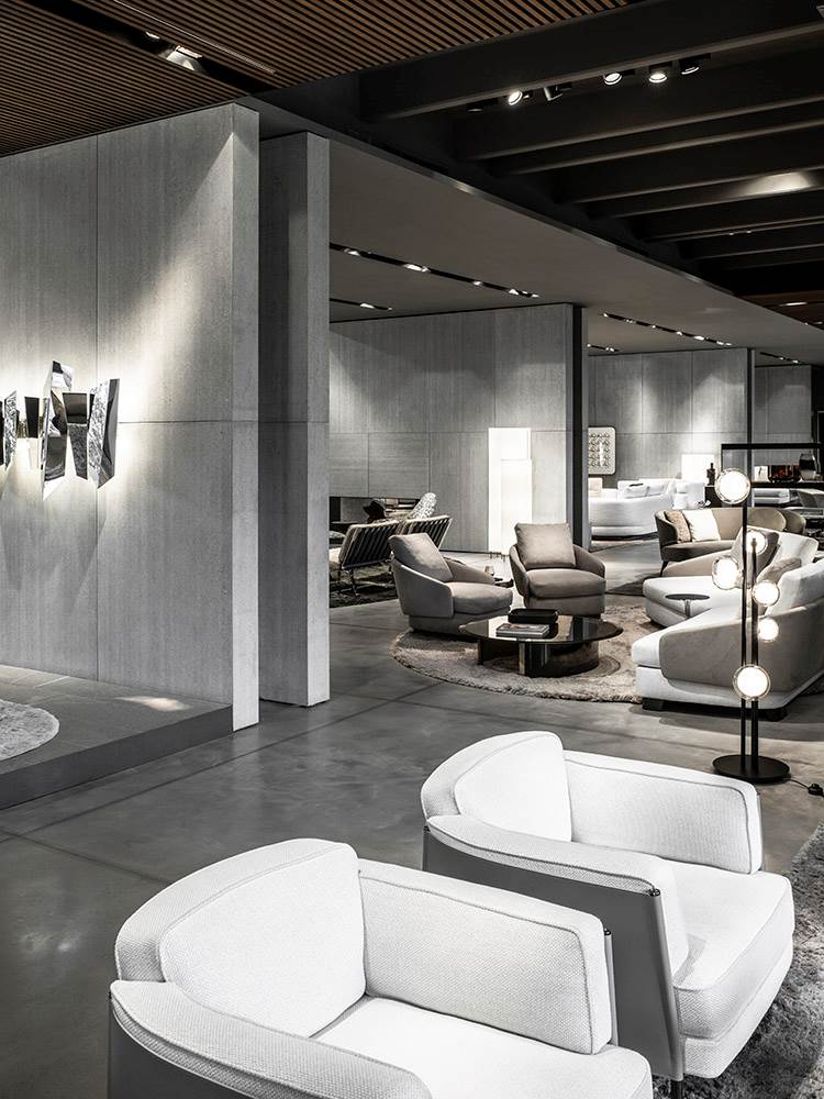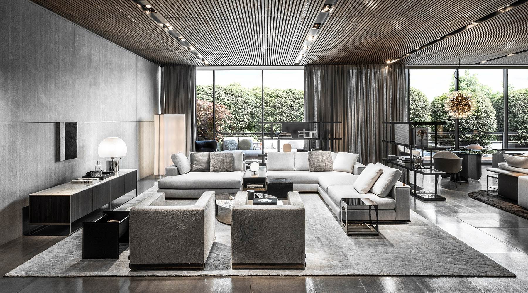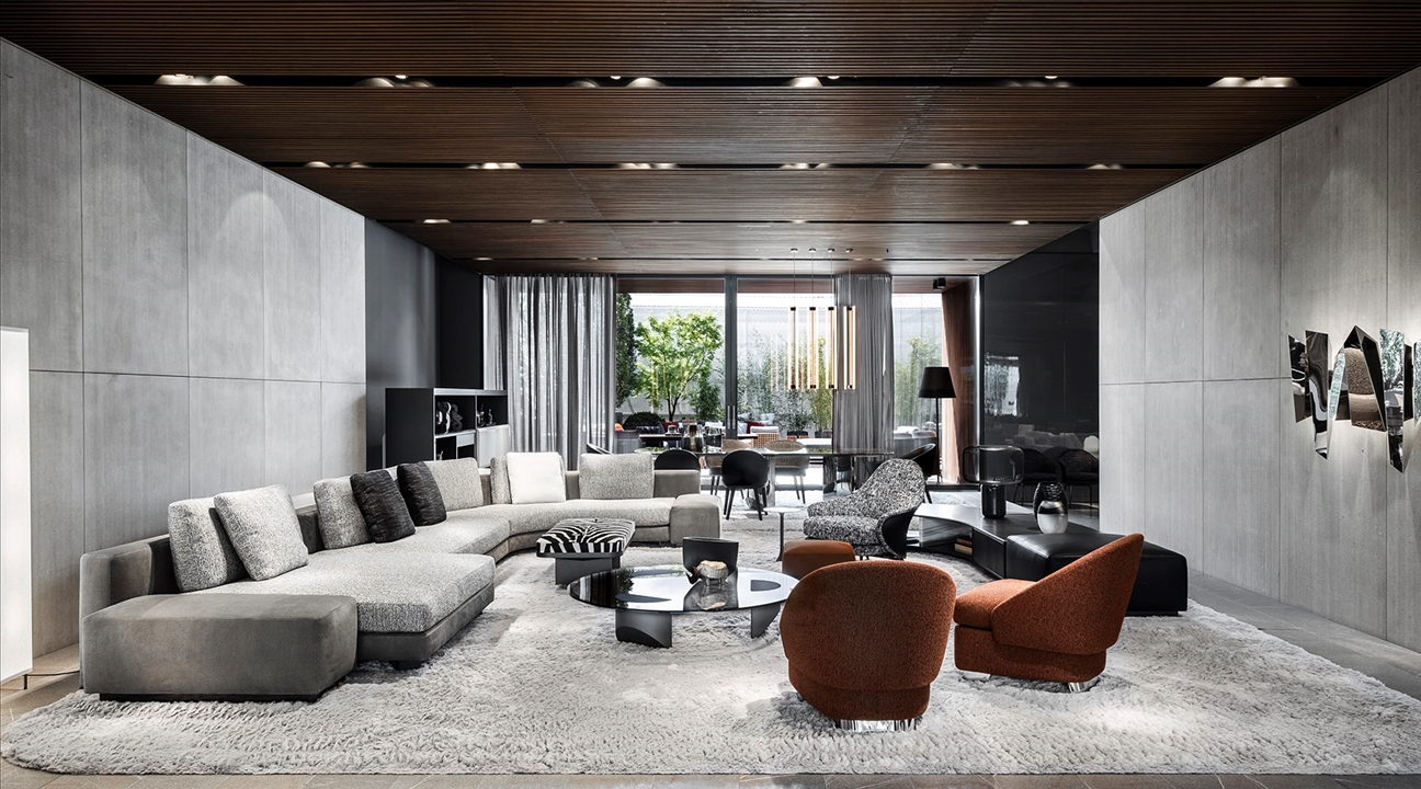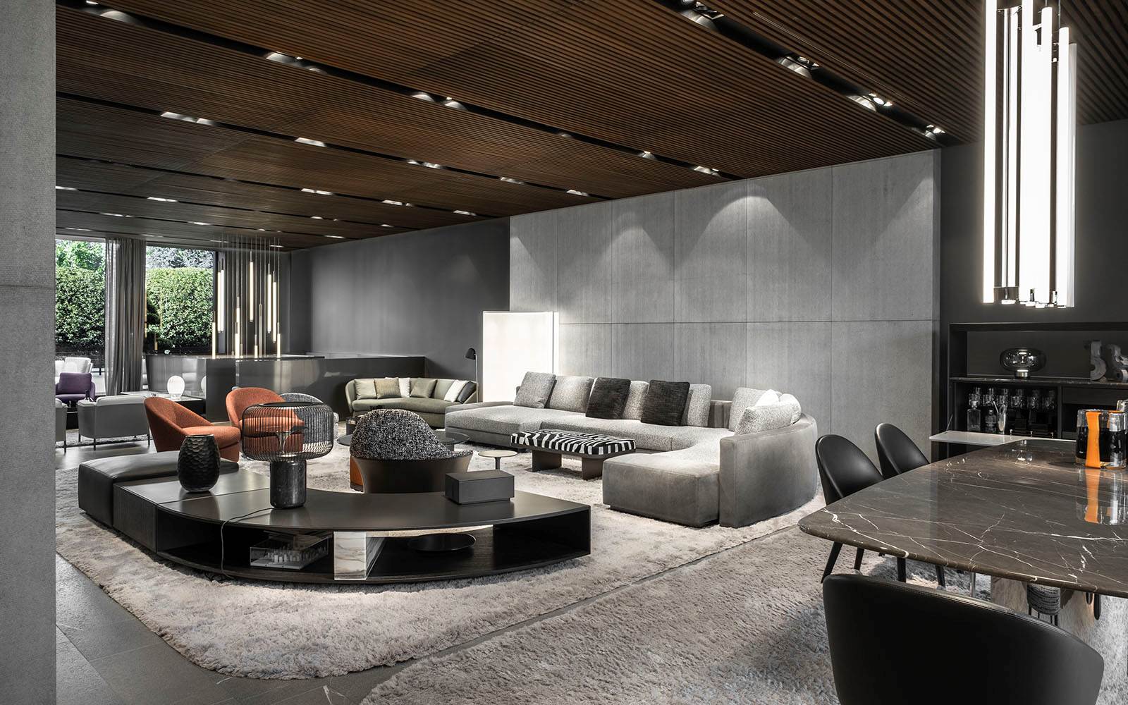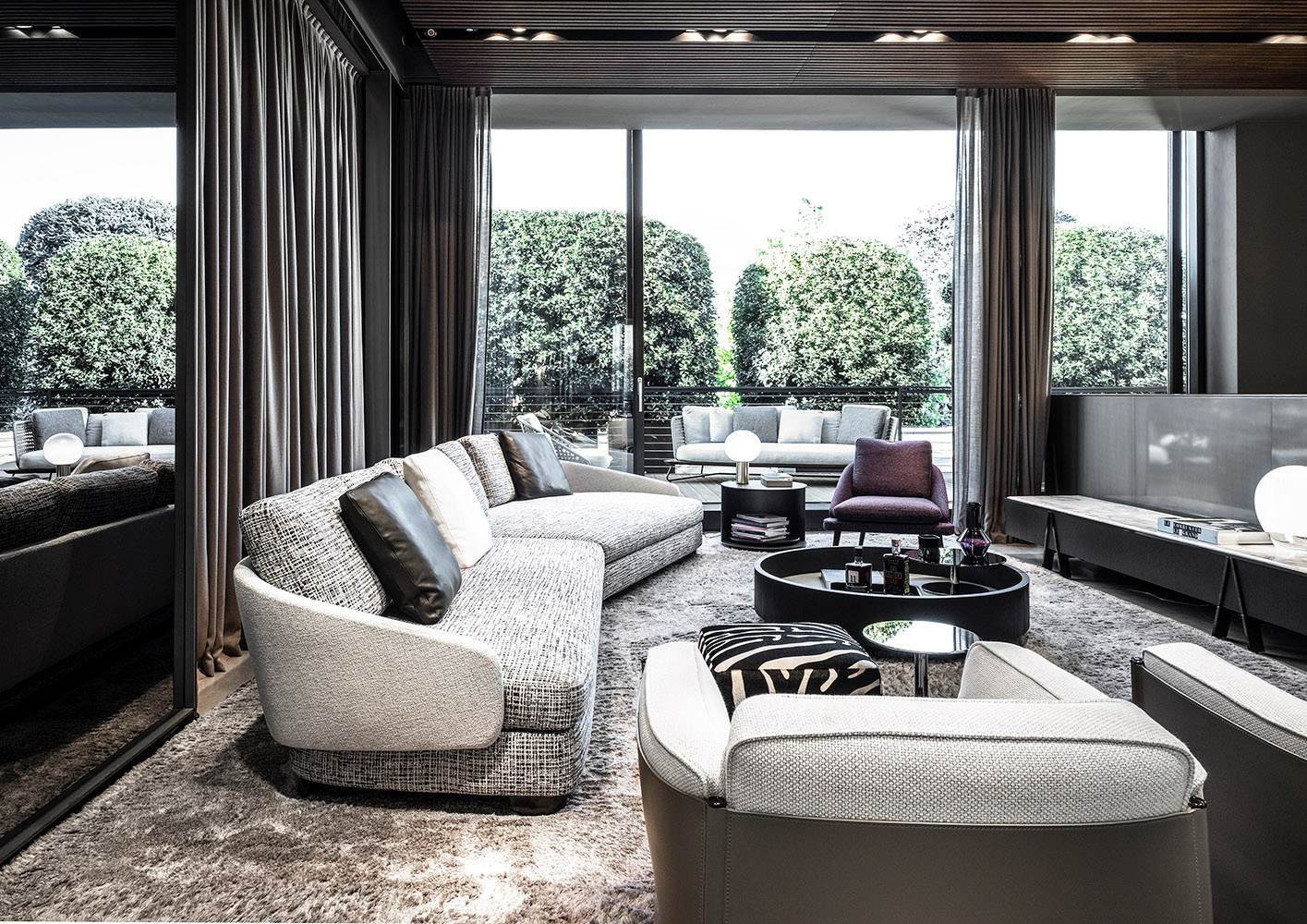 A presentation that expresses the creativity, concreteness and elegance of the entire Minotti collection, quintessence of the company’s style and representing an ideal living environment, oozing with the atmosphere and emotions of a real home.
