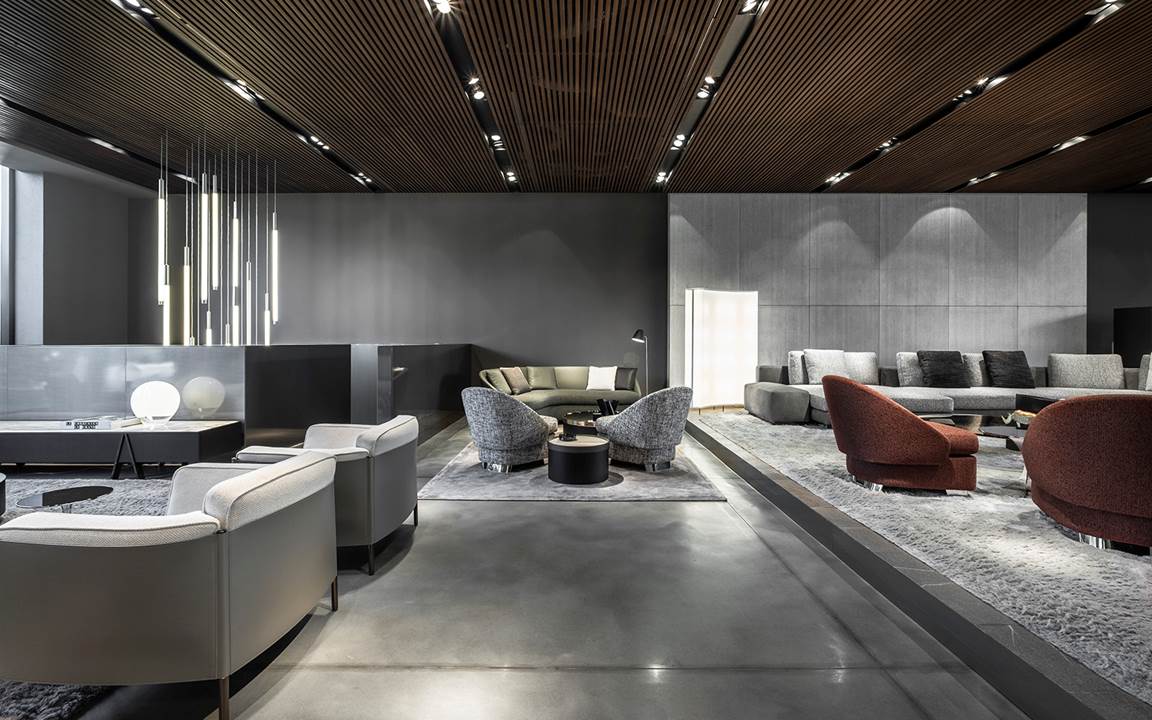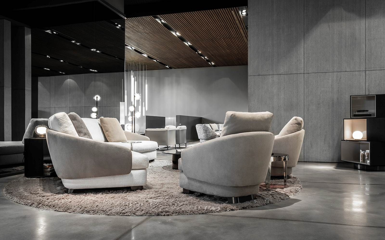 The 2019 Collection, launched last April during the Salone del Mobile.Milano, is today the protagonist of the exhibition concept of the showroom in the HQ in Meda.